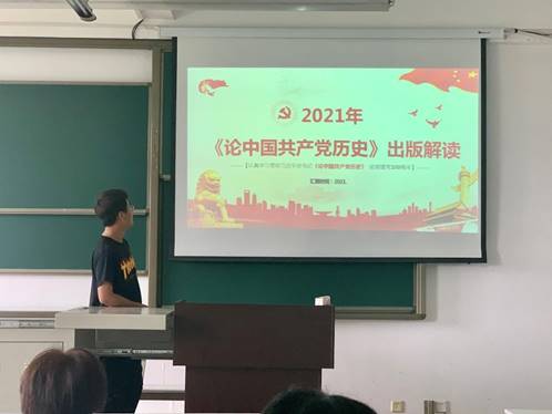 随后,由庄新洋同志带领大家解读《论中国共产党历史》的出版。学习分为三个部分:《论中国共产党历史》出版背景介绍、篇目介绍及篇目专题学习。首先,庄新洋同志重点阐述了《论中国共产党历史》重要指导意义:有利于广大干部群众学好党的历史,实现中华民族伟大复兴。