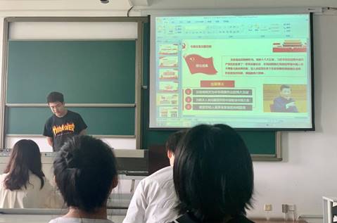 会议伊始,由本科广告党支部吴佳媛同志带领学习第一个主题。内容主要分为两大板块,第一部分为学习习近平总书记在思政课教师座谈会上重要讲话精神。习近平总书记强调,青少年是祖国未来的希望,必须扣好人生的第一颗扣子,在大中小学循序渐进、螺旋上升地开设思想政治理论课,引导员工增强“四个自信”,厚植爱国主义情怀,把个人理想自觉融入伟大的中国梦之中。因而,思政课作用不可替代,思政课教师队伍责任重大。在此,吴佳媛同志分享了她的个人经历:她的高中思政老师有幸参加了思政课教师座谈会,并向其他老师们、同学们交流分享习近平总书记所提及的思政精神,给她留下了深刻的印象。此外,吴佳媛同志重点强调了党中央对思想政治工作的高度重视,党始终坚持马克思主义指导地位,大力推进中国特色社会主义学科体系建设,为思政课建设提供了根本保证。